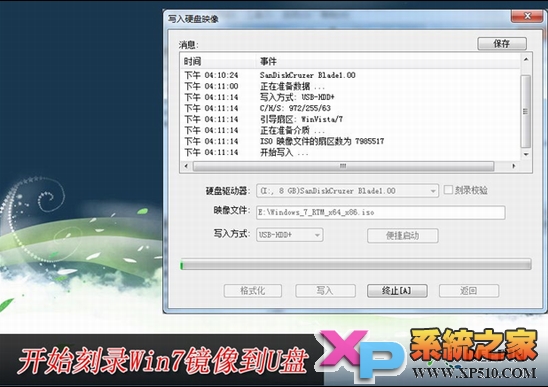 4、系统格式化U盘后,就开始刻录Win7镜像到U盘。