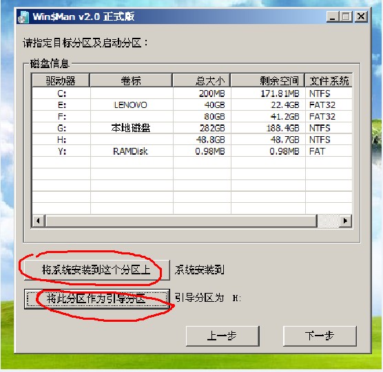 12、我们选中你所装的系统盘盘符,点击下一步