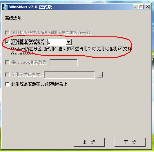 15、点击将系统盘符指定为C,点击下一步