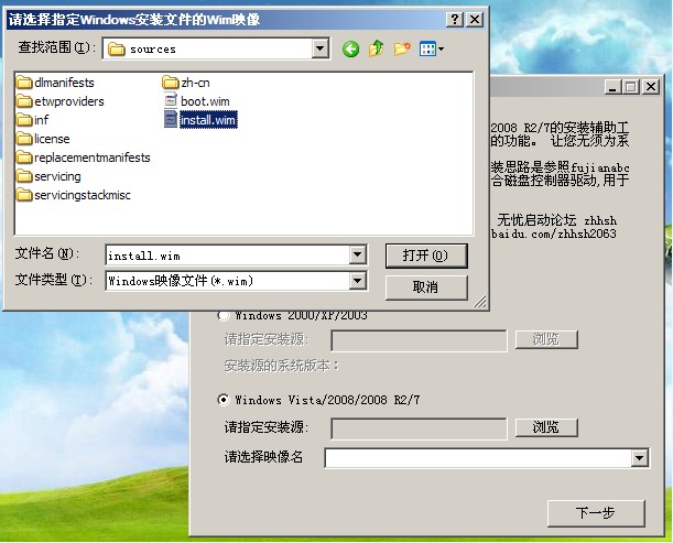 10、选中install.wim点击选择打开项