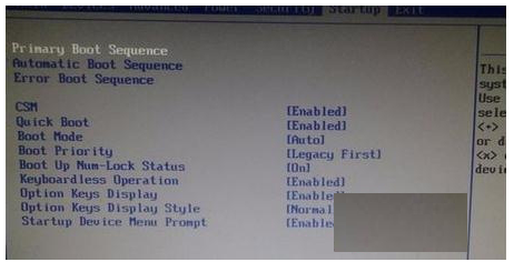 首先,在开机联想LOGO界面点击F1,进入BIOS界面,“→”右键头移至“Startup”