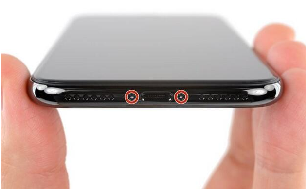 1,使用螺丝刀将iPhone底部的两颗6.9毫米五角梅花型长螺丝卸下来。