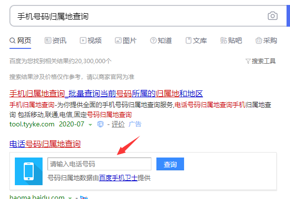 1、打开电脑或者手机百度,搜索“手机号码归属地查询”,然后在查询框里输入需要查询的手机号码就可以查出来了。