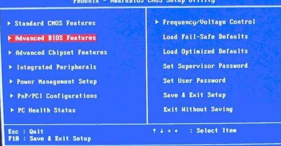1、在award bios主界面中选择“Advanced BIOS Features”按下回车键。