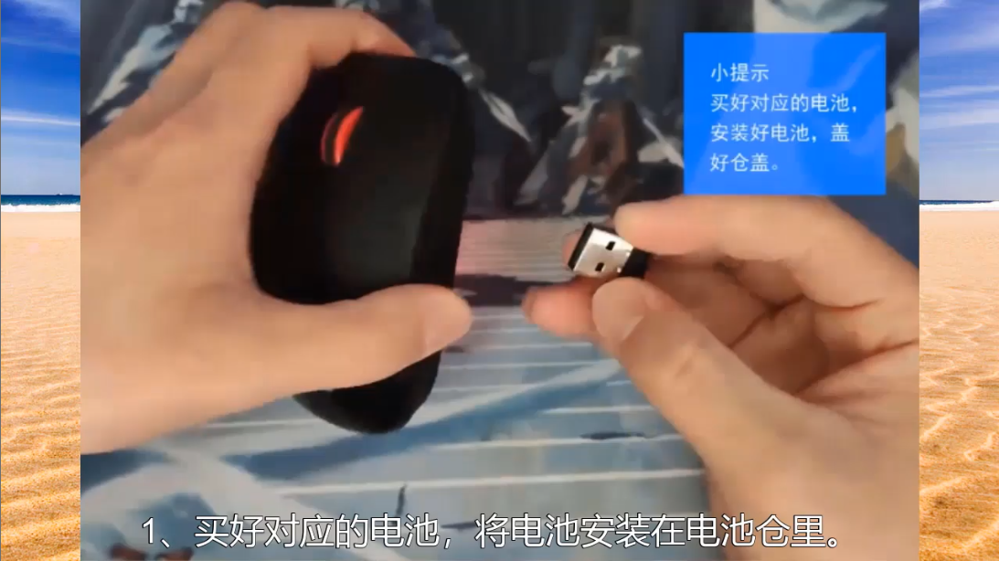 1、买好对应的无线鼠标电池,将电池装在电池仓里。