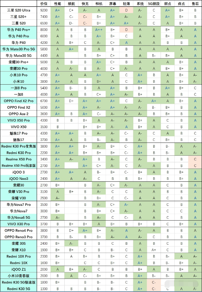比如玩游戏肯定要性能一流的(iQOO3、Realme X50 Pro、Redmi K30 Pro、小米10系列、一加8系列、OPPO Ace2)。