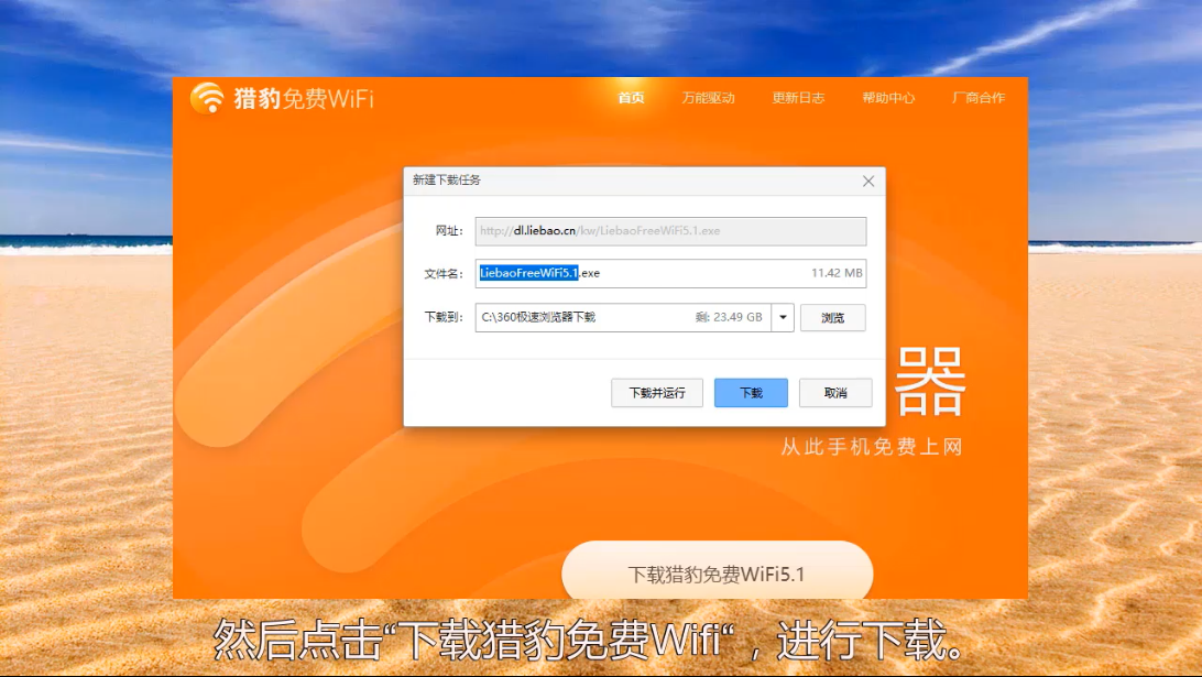 1、首先我们在百度上搜索下载一个猎豹免费WiFi软件。
