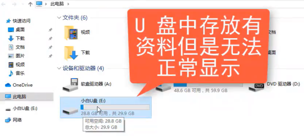 1.U盘中有文件却没有显示出来。