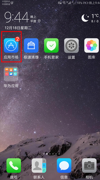 1、打开手机界面找到应用市场图标。