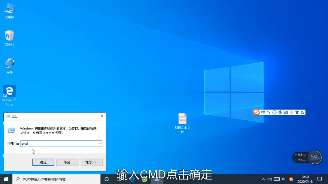 1、这个问题可能是由于网络共享中心权限错乱导致的,我们按下Win+R打开运行,输入cmd打开命令提示符窗口。