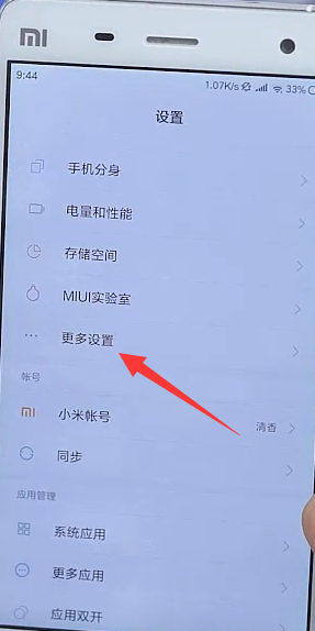 1、打开手机设置,点击更多设置。