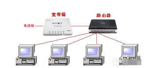路由器:路由器的功能是允许多台计算机通过一根网络电缆同时访问Internet,这起到了分配作用。连接顶部的猫和底部的计算机。