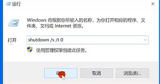 方法一:按下win+R打开运行,输入shutdown/s/t0,点击确定。