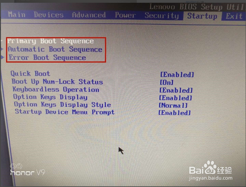 2、然后我们选择primary Boot Sequence,进入到当前电脑的启动顺序页面。这里我们能看到一些英文字母,USB KEY1就是U盘启动项,CD/VCD是光驱启动。