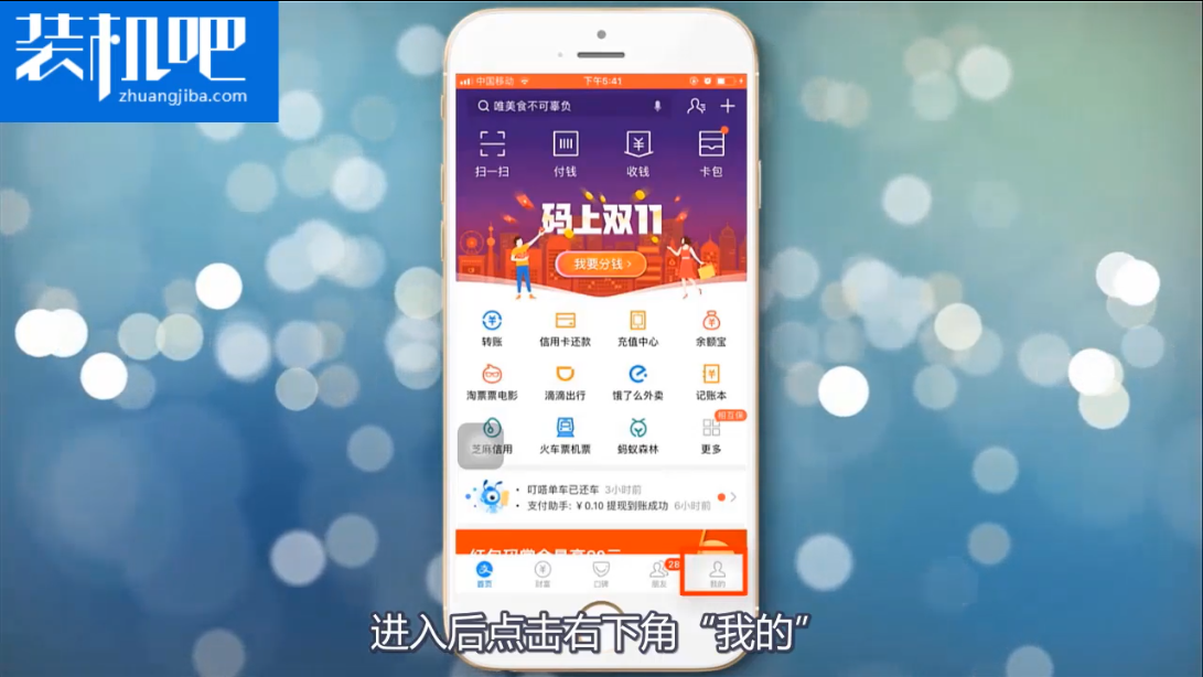 1、打开支付宝app,然后点击右下角的【我的】。