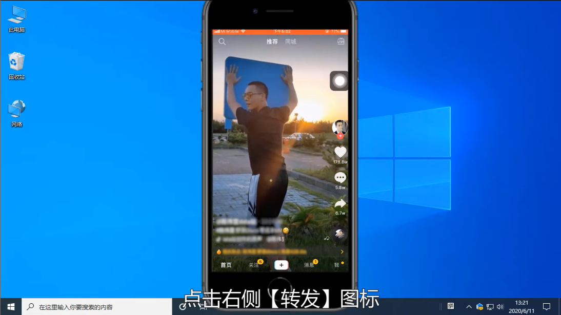 1、首先打开抖音视频,找到想要的视频,然后点击右下角的转发按钮。