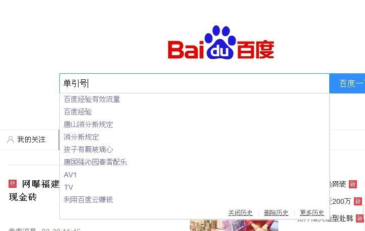 1.首先打开百度首页,在打开的百度搜索框中输入“单引号”,点击旁边的按钮进行搜,进入下一步。