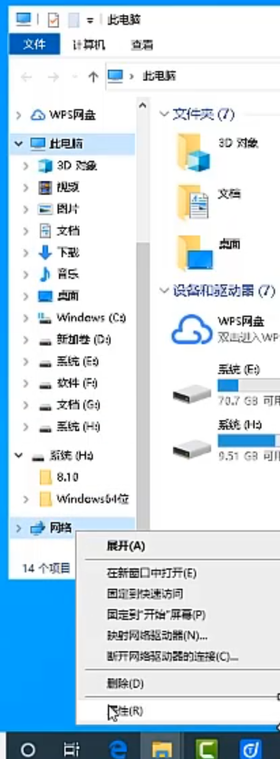1.点击打开此电脑,右击网络选择属性。