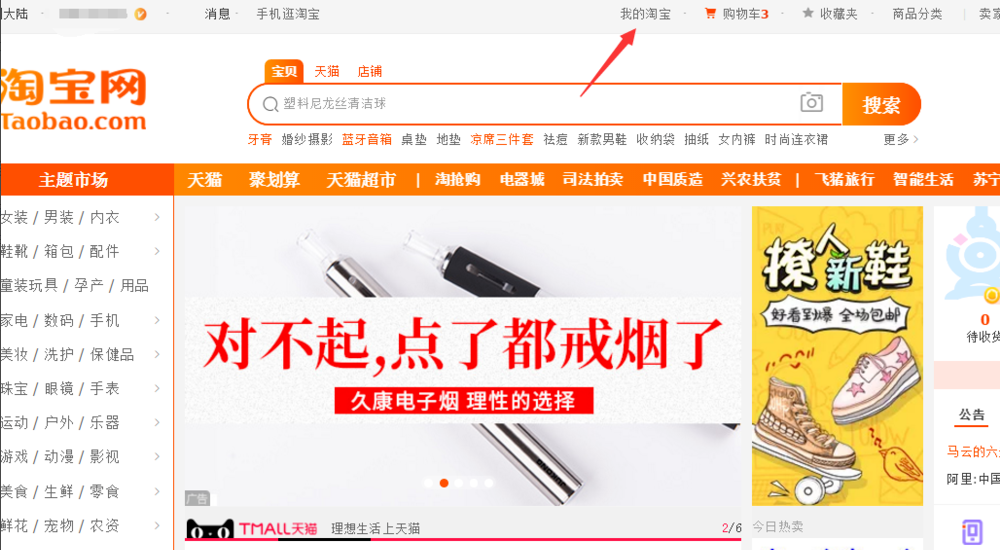 1、首先在电脑上打开淘宝网,登录自己的账号,然后点击进入“我的淘宝”。
