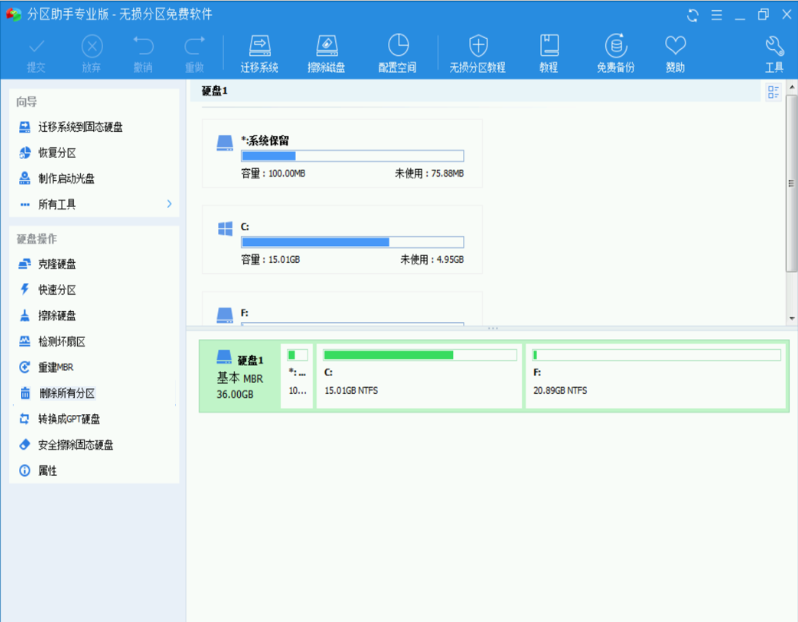 1、首先我们下载分区助手专业版,并启动之后,查看自己的各自分区磁盘大小。