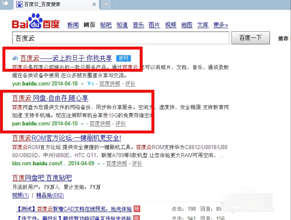 1、百度搜索框里输入百度云或者百度网盘都会出现结果,两个选择一个登录即可,一个是yun.baidu.com,一个是pan.baidu.com,两者是关联关系,登录任何一个即可。