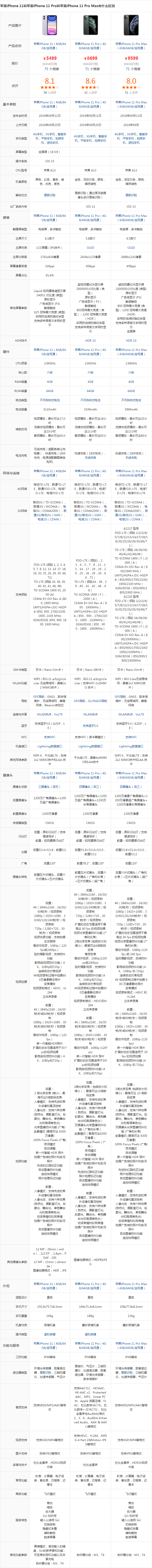 苹果11手机参数由于有些多,这里就提供了图像,希望大家可以认真对比: