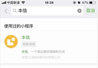 1、在微信中搜索“本信”小程序。
