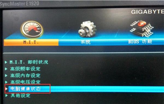 1、启动电脑按快捷键进入BIOS里面,切换到M.I.T选项,选择电脑健康状态,按回车键进入。