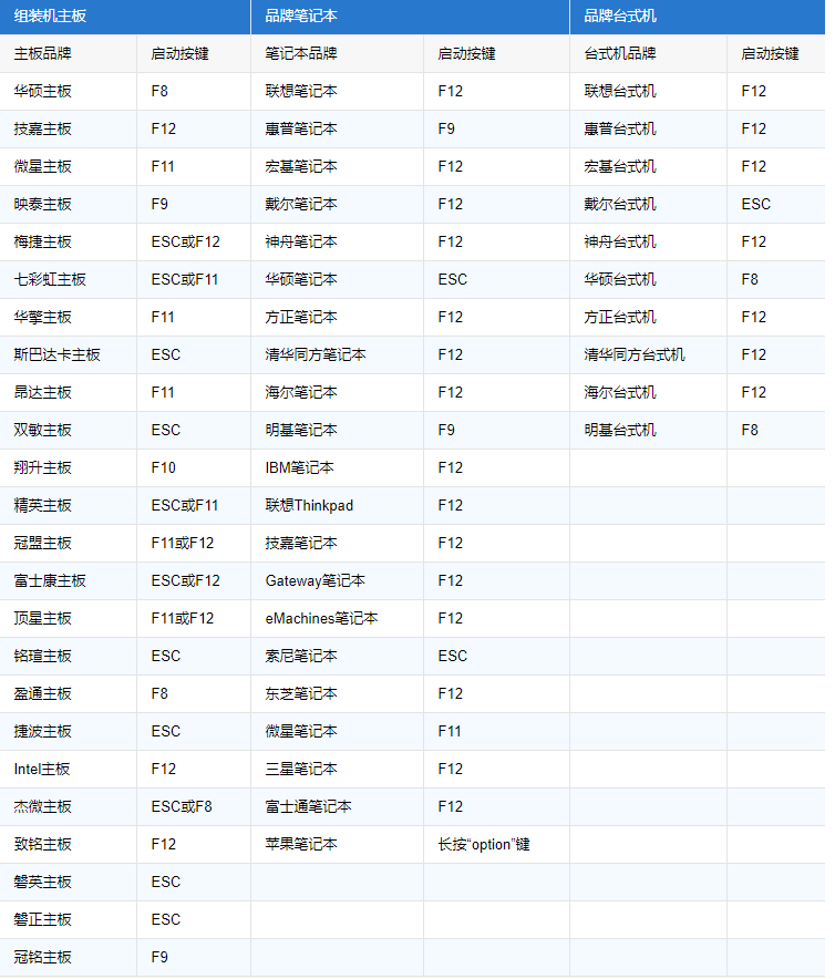 1、快捷键快速U盘启动: