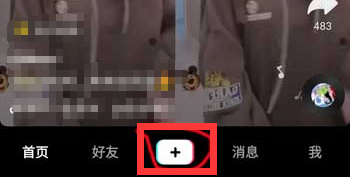 1、打开抖音短视频最新版主界面,点击下方的“+”号进入拍摄界面;