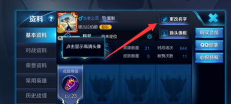 1)购买改名卡之后,返回主页面。然后点击左上角的头像,进入修改名字的页面。可以看到,在右边就有“更改姓名”的页框,点击一下即可进行修改。