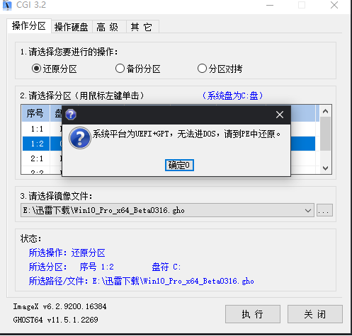 系统平台为uefi gpt,无法进dos请到pe中还原是怎么回事