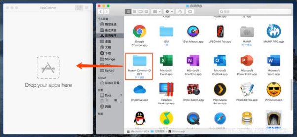 2、打开AppCleaner,打开应用程序目录,将要卸载Mac软件拖入AppCleaner窗口,见下图:
