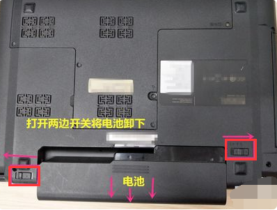 1、先来把电脑关机,电源也拔了,然后翻到背自部取下电池。
