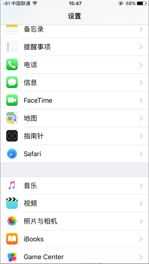 1、打开手机的设置----Safari。