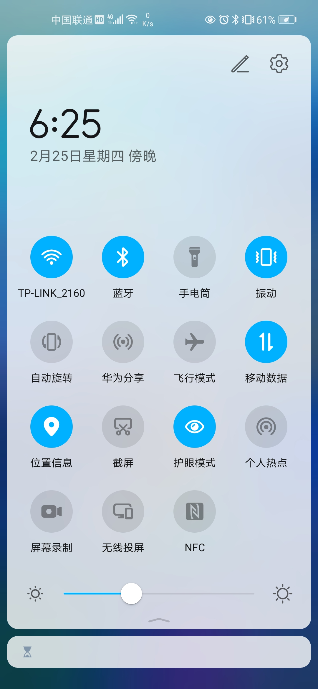 1、直接点击华为手机顶部并向下拉,在下拉选项中就可以看到有个无线投屏选项,直接选择打开即可。