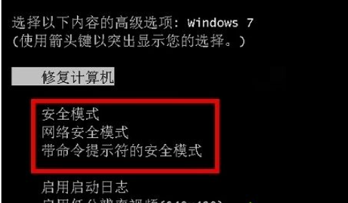 1、按下开机键,然后不停的敲击F8键进入高级选项菜单选择安全模式,也可以直接选择下方的最近一次正确配置修复(如果没有进入有可能就是硬件问题或者系统完全崩溃,不过蓝屏大部分都不是硬件损坏问题)