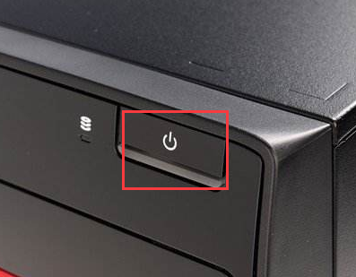 1、首先在联想 启天M415电脑的主机箱上,按下开机键。