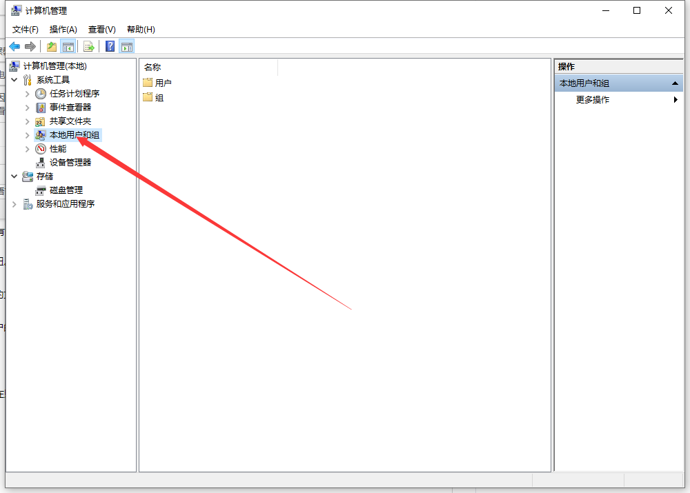 1、打开计算机管理进入到管理界面后我们继续在左边的快捷栏中找到本地用户和组的按钮。