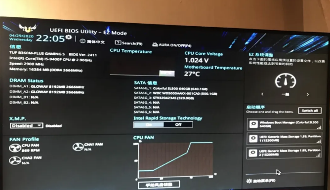 以上是华硕进入 Bios 的主界面,我们都可以通过再按 F7 进入高级模式,在高级模式中有非常多的选项,大家可以根据自己需要来设置启动项或者引导模式以及调整硬盘模式等等。
