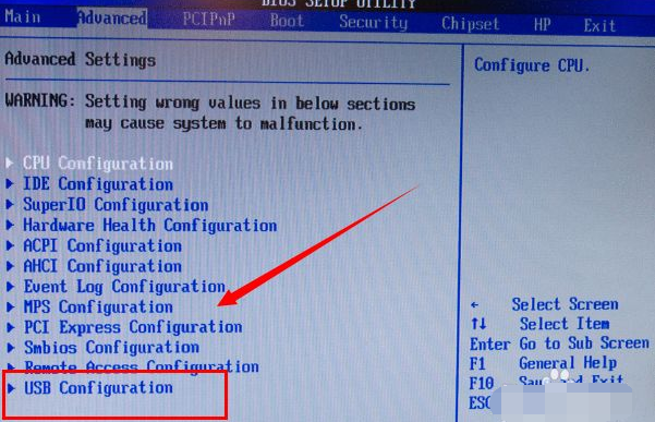 1、先排除是否是u盘本身的问题。如果不是u盘的问题的话,继续下面的解决步骤。检查主板bios设置,检查usb configuration(usb功能是否开启),是不是正确。