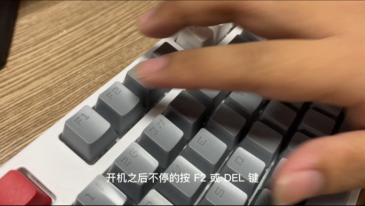 1、首先重启电脑,在开机时连续敲击键盘“F2”“del”进入bios设置。