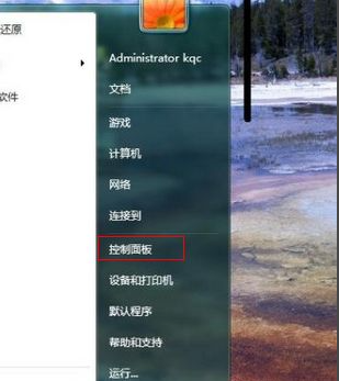 1、点击开始,选择控制面板。