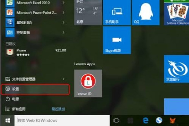 一、首先,打开Dell笔记本电脑,进入win10系统,然后,在桌面的左下角点击“开始”在开始菜单中点击打开“设置”。