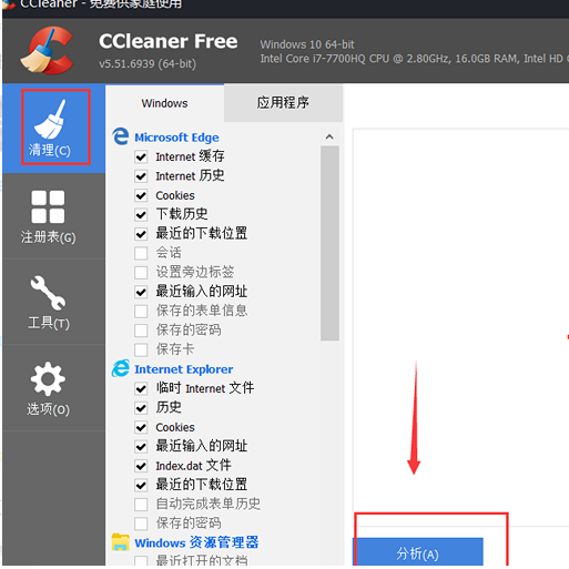1.你可以使用ccleaner软件来清除垃圾文件,首先打开软件,选择清除选项,然后选择"windows"进行垃圾清理,在默认情况下点击分析文件: