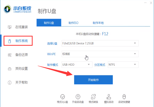2.选择win10系统>开始制作。