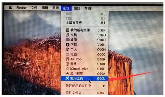 1.首先打开mac电脑在桌面顶部点击“前往”找到“实用工具”。
