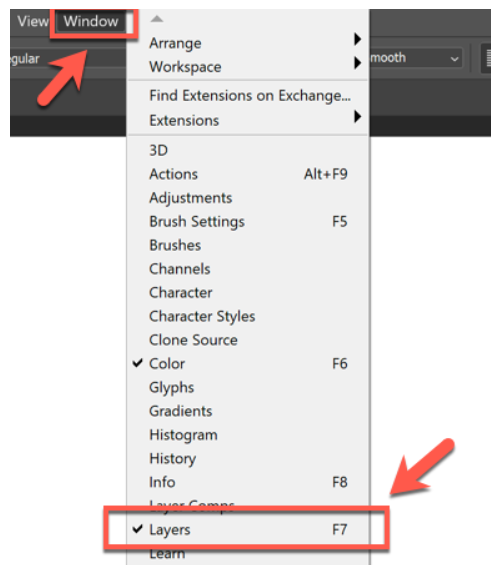 1、如果看不到“层”菜单面板,请按键盘上的F7或单击Windows>层。