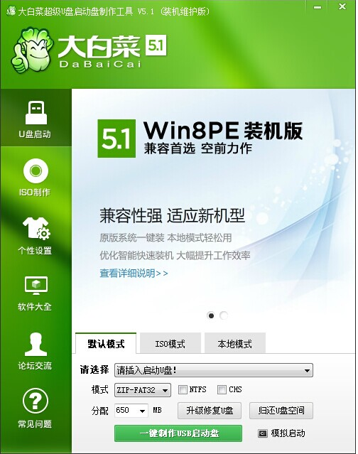 软件版本:大白菜着急u盘启动盘制作工具+1个8g以上的空白u盘