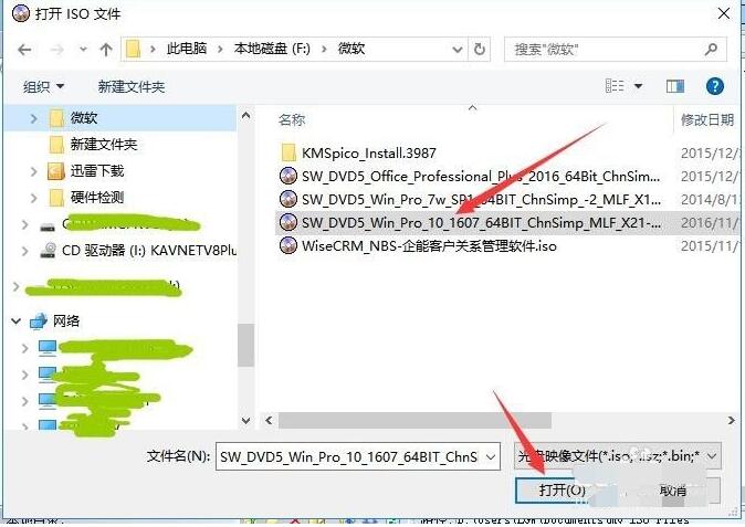 2、在“打开ISO文件”窗口,根据自己的保存路径选择已经准备好的win7系统镜像文件。